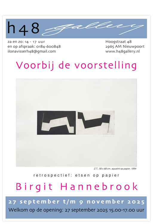 De tentoonstelling Voorbij de voorstelling is een overzicht van de etsen die Birgit Hannebrook maakte van 1994 tot nu toe. H48 is blij om haar eerste retrospectief te tonen.